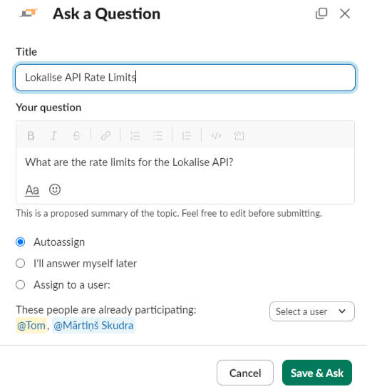 Slack-native Q&A workflow