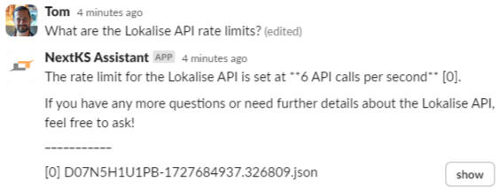 Engage with a smart assistant that taps into your company-wide knowledge, directly from Slack. Powered by AI, the NextKS Assistant provides instant, insightful responses based on your team's collective expertise. Say goodbye to long waits and embrace quick, reliable answers without leaving your workspace.